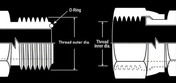 Fitting ini menggunakan O-ring karet untuk menciptakan segel statis. Jenis seperti SAE O-Ring Boss sangat efektif mencegah kebocoran karena karet mengisi celah mikroskopis pada ulir. ORS sangat direkomendasikan untuk aplikasi yang menuntut kebocoran nol pada tekanan tinggi.